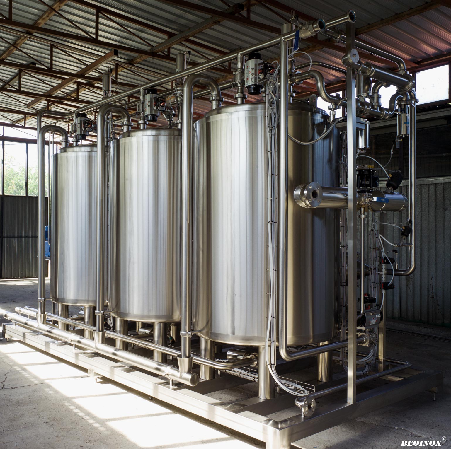 Najčešće se sastoje iz tri rezervoara (voda, kiselina, baza). Osnovne faze CIP-a su: